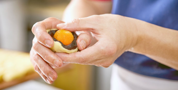 精挑細選的滑順豆沙內餡,甜而不膩,是香格蛋黃酥不可缺少的靈魂之一。