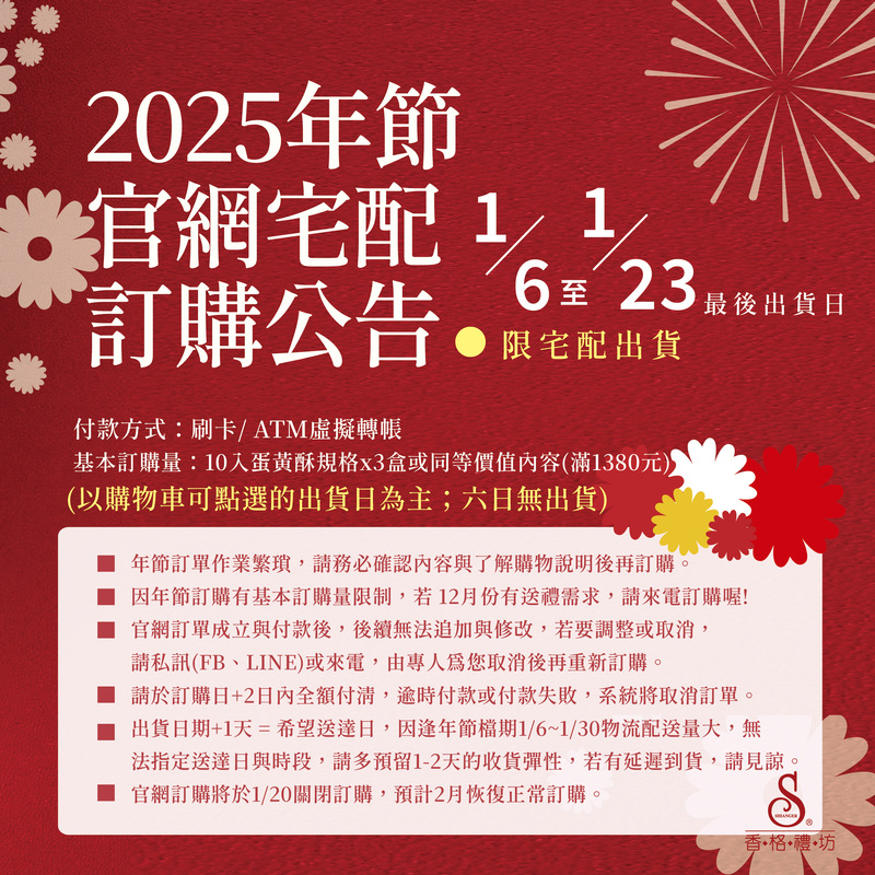 2025/1/20(更新)--官網關閉訂購,預計2月恢復正常訂購